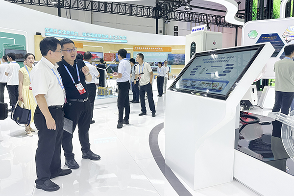 星云股份副董事长兼总裁刘作斌向莅临展位的领导嘉宾介绍展品